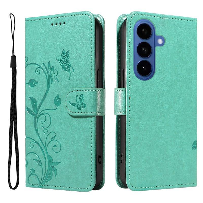 ABEEL Samsung Galaxy S26 Plus Plånboksfodral Konstläder Blommönster - Grön
