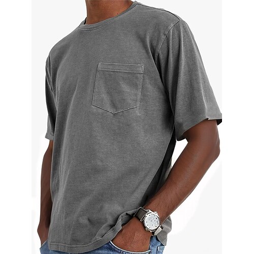 Per uomo Maglietta Manica Corta Girocollo Estate Autunno Retrò Moda Designer Nostalgico Tasca Moda Vintage ▾ Vacanza Streetwear Uscire Nero Verde chiaro Azzurro cielo Maglietta Top per Uomo