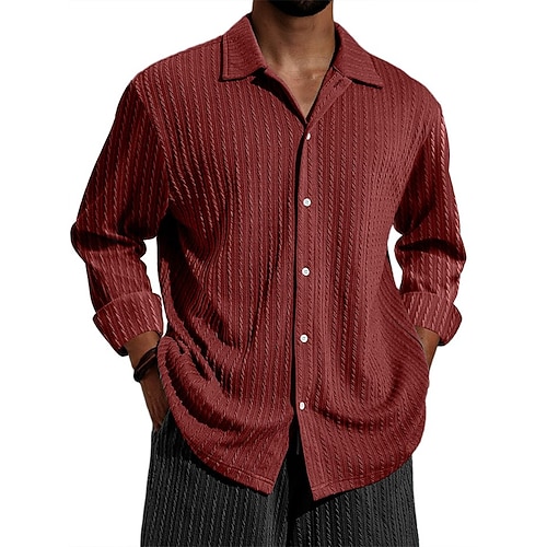 Per uomo Camicia casual Nero Bianco Borgogna Blu marino Azzurro cielo Manica Lunga Colore Solido / Tinta Unita Bavero Abbigliamento quotidiano Base Abbigliamento Tradizionale / Classico
