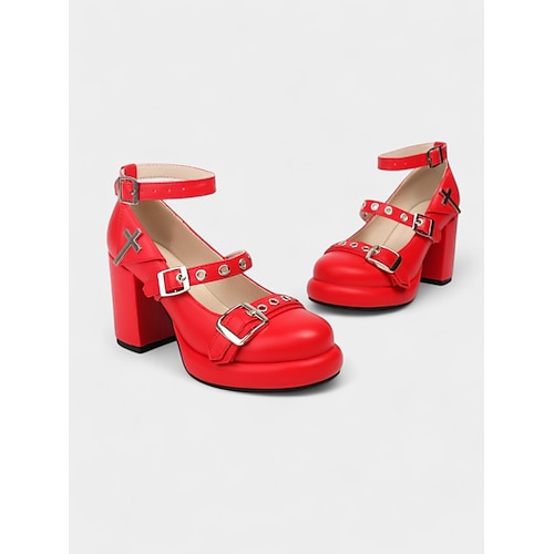Gothic-Plateau-Mary-Jane-Pumps für Damen mit Schnallenriemen und Kreuzdetail – schwarze, klobige High Heels für Halloween, Cosplay und Rockmusikfestivals