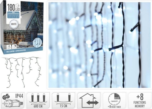 Koopman Weihnachtslichtvorhang außen 180 LEDs Steuerung Timer kaltweiß grünes Kabel