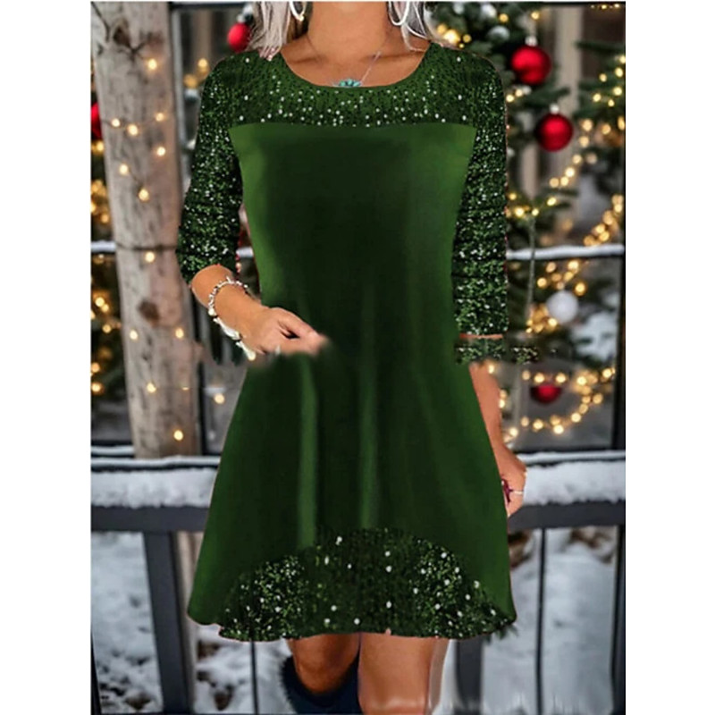 Women's Midi Dress Black Dress Sequin Dress Cocktail Dress Formal Dresses Casual Street Date Regular Fit Plain Long Sleeve U Neck Black Spring Fall