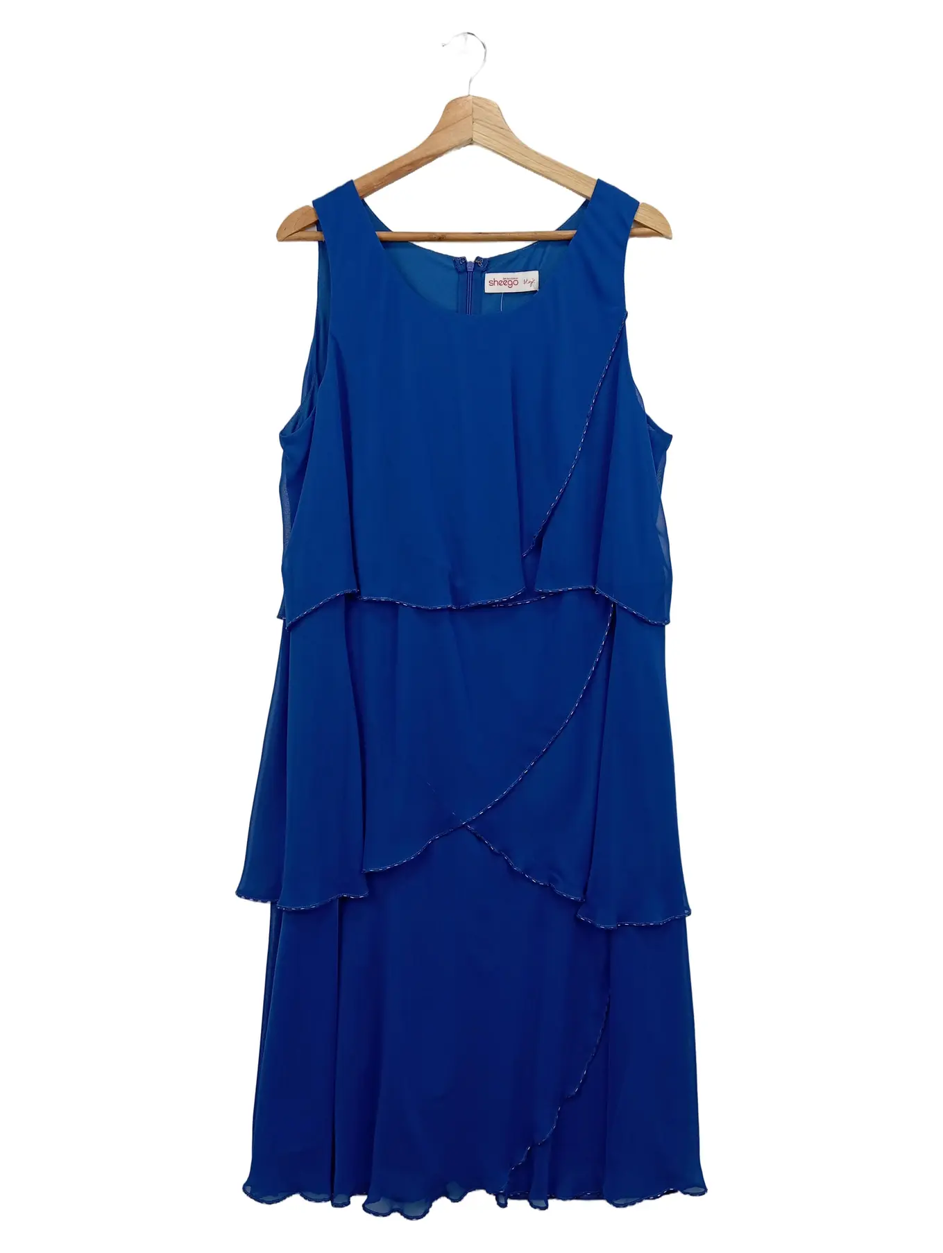 SHEEGO Kleid Volant Blau Größe 48 L Midi Elegant