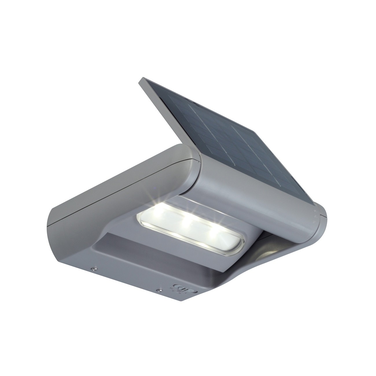 Lutec Mini Led Strahler - solarbetriebene Außenwandleuchte - 18 x 18 cm - 3 Stufen Dimmer - 1W LED inkl. - IP44 - silbergrau