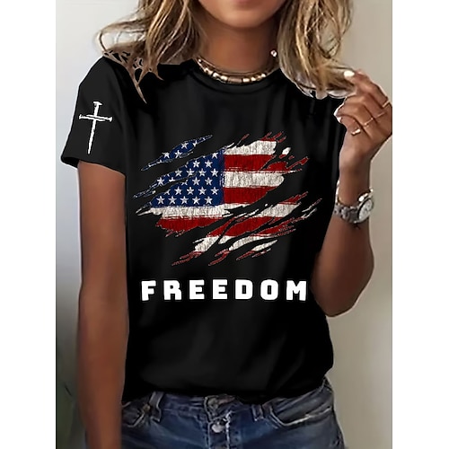 Per donna Maglietta Grafico Lettera Bandiera Americana Vintage Elegante Classico Manica Corta Girocollo Top Regolari Quotidiano Stampato Nero Bianco Rosso Blu Estate Primavera