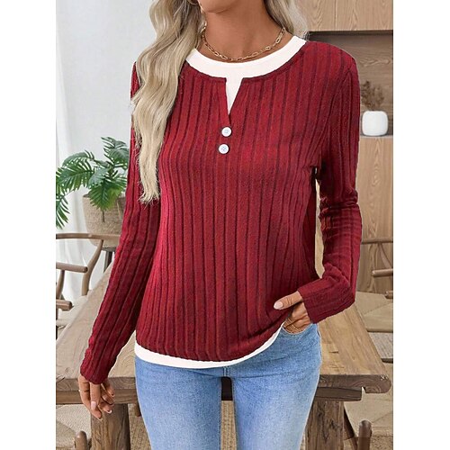 Per donna Blusa Tinta unica Elegante Casual Manica Lunga Girocollo Top Regolari Quotidiano Patchwork Bottoni Nero Rosso Blu marino Grigio Primavera Autunno Inverno