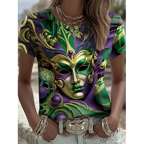 Carnevale Per donna Maglietta Floreale Vintage Elegante Classico Manica Corta Girocollo Top Regolari Quotidiano Stampato Nero Giallo Viola Verde Estate Primavera