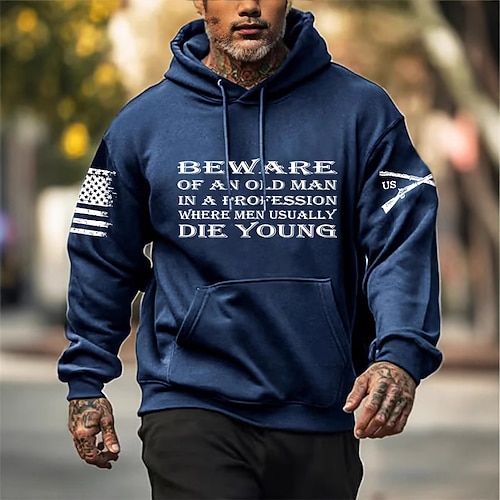 Per uomo Lettera Stampe Grafiche Bandiera Nazionale Felpa con Cappuccio Moda Quotidiano Casual Manica Lunga Con Cappuccio Vacanza Feste Abbigliamento casual alla moda Festival Nero Bianco Blu reale
