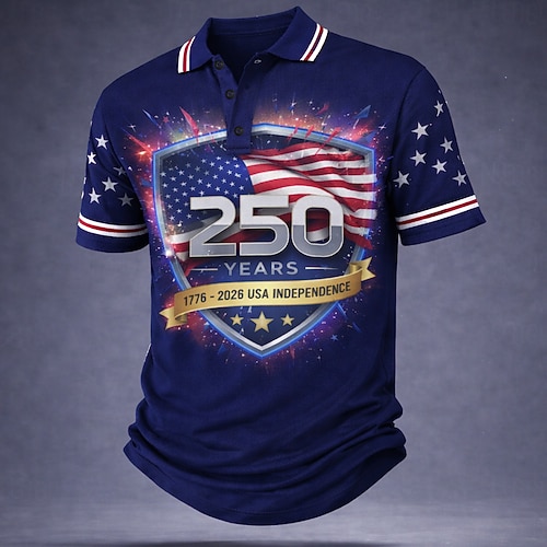4. Juli 2026 250. Herren Amerikanische US-Flagge Poloshirts Kurzarm Polo-Shirts Revers Lässig Athleisure Alltagskleidung Festival-Outfit 3D-Druck Knöpfe Frühling Sommer Blau Rote Grau