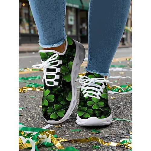 scarpe da ginnastica sportive da donna con stampa trifoglio per San Patrizio: scarpe da passeggio leggere e ammortizzate per abbigliamento casual, sfilate, attività all'aperto e celebrazioni natalizie