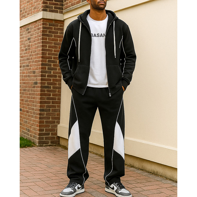 Men's Zip Up Hoodie 2 Piece Tracksuit Sweatsuit Sets Baggy with Pocket Color Block Clothing Suit Fall Black Dark Blue Hiking Vocation Outdoor Lightweight Long Sleeve Sport Activewear Micro-elastic