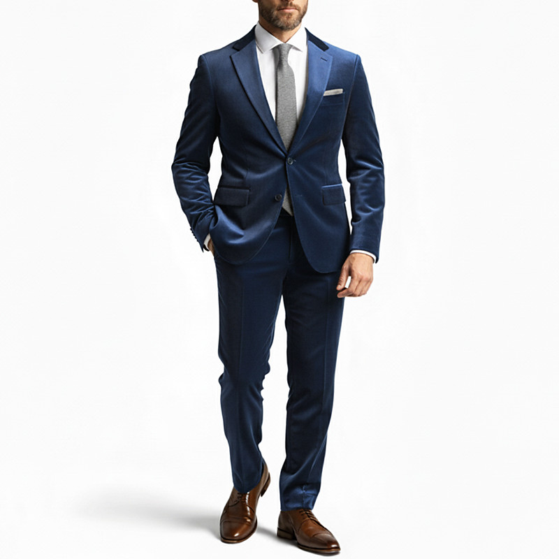 Men's Casual Business Velvet Suits Notch Lapel Black Brown Formal Solid Colored Tailored Fit 2 Piece Double Breasted Four-buttons