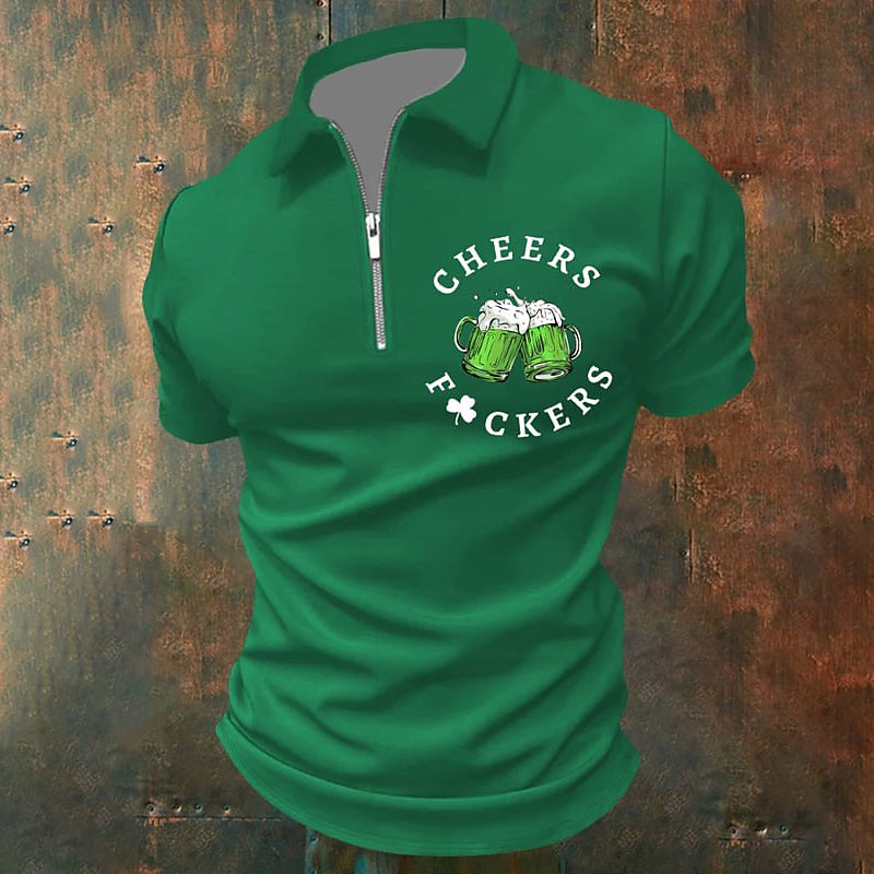 St. Patrick Men's Letter Beer Polo Polo Shirts Zip Polo Short Sleeve Polo Shirts Turndown Zip Casual Vacation St.Patrick's Day Holiday Festival 3D Print Summer Black White Green