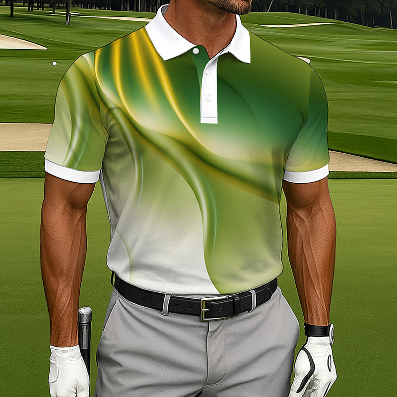 Herren Geometrisch Linie Polo Kurzarm Polo-Shirts Revers Business-Casual Athleisure Knöpfe Sommer Grün