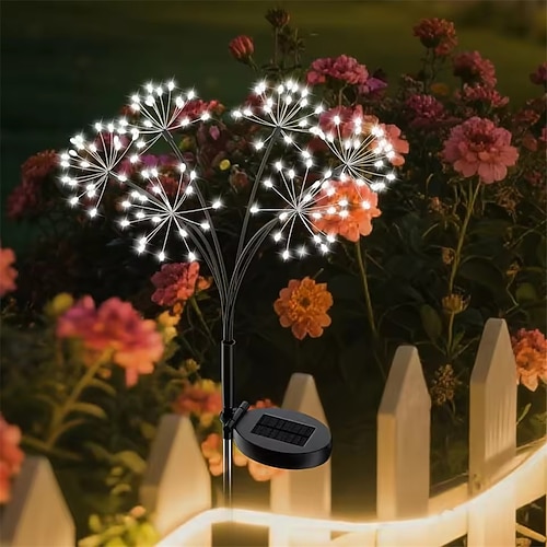 Ghirlanda luminosa a energia solare a forma di dente di leone, fata e fuochi d'artificio - 2 modalità di illuminazione per giardino, prato, campeggio, decorazione per feste 1 pezzo