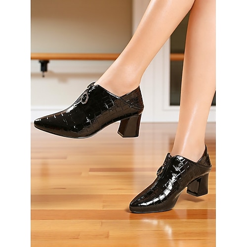 scarpe da ballo latino da donna in vera pelle, scarpe da ballo da sala con tacco a blocco in pelle di coccodrillo color bordeaux per salsa professionale spettacoli di festa