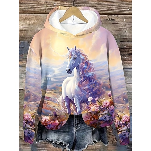 Per donna Felpa con cappuccio Grafico Animale Casual Manica Lunga Con Cappuccio Top Regolari Abbigliamento da sera Streetwear Abbigliamento Quotidiano Viola Primavera Autunno Inverno