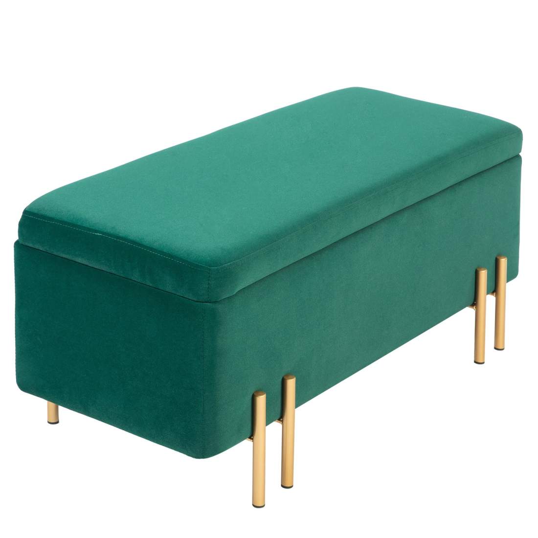 Benk, polstret benk med oppbevaringsplass, brystbenk, stoff, metall, gummitre, skum, grønn, 100 x 40 x 42 cm