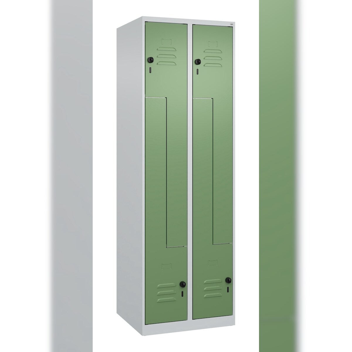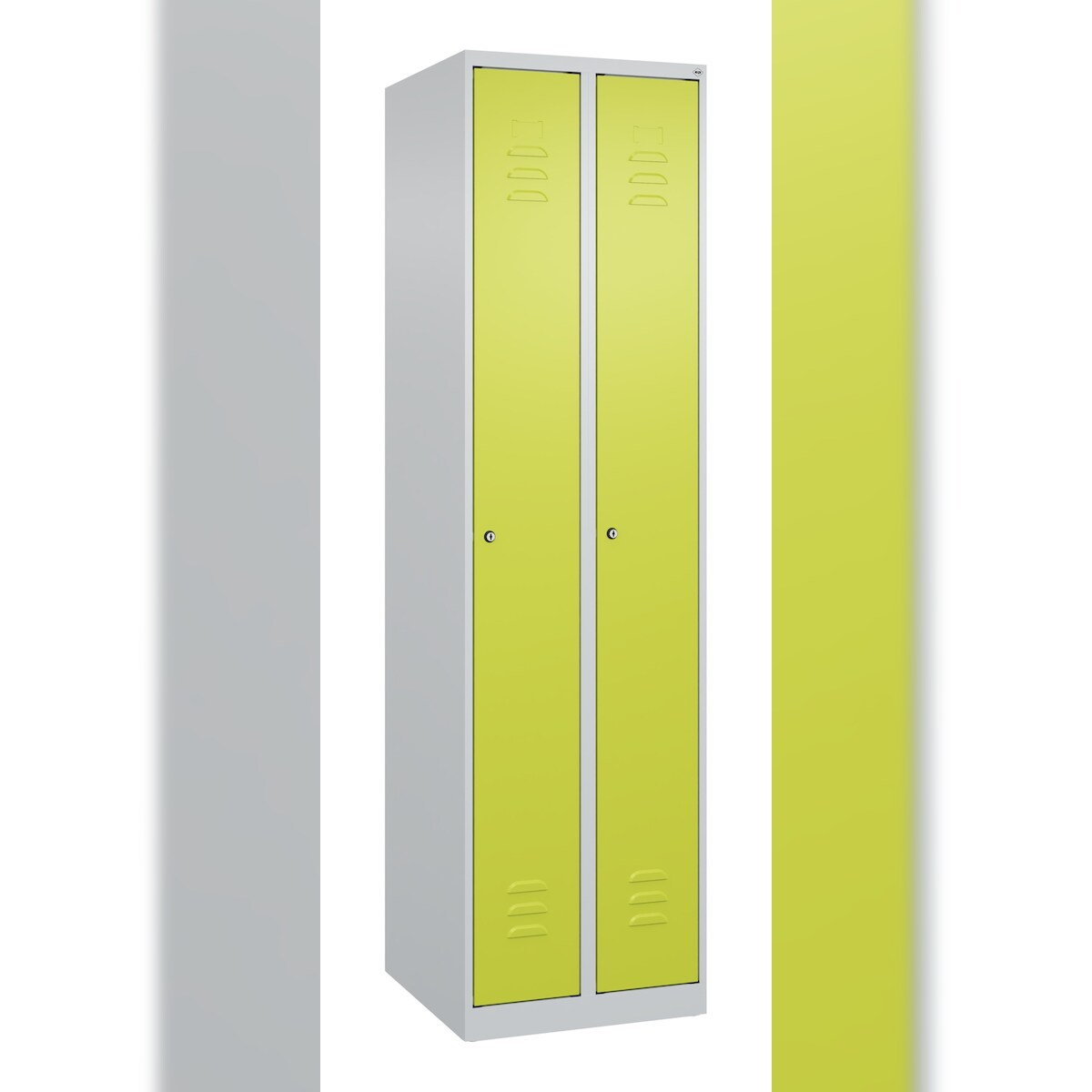 C+P Spind Classic PLUS, 2 Abteile, HxBxT 185x50x50cm, Zylinderschloss, Hellgrau/Clowngrün von PROREGAL