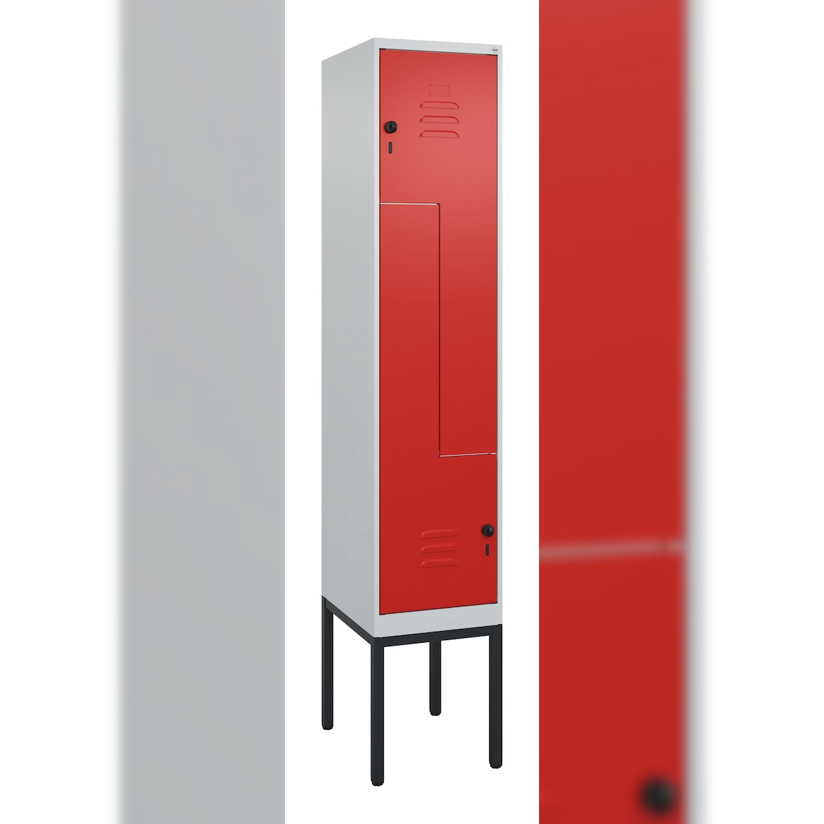 C+P Z-Spind Classic PLUS, Gestell, 2 Abteile, HxBxT 212x40x50cm, Sicherheitsdrehriegel, Hellgrau/Rot von PROREGAL