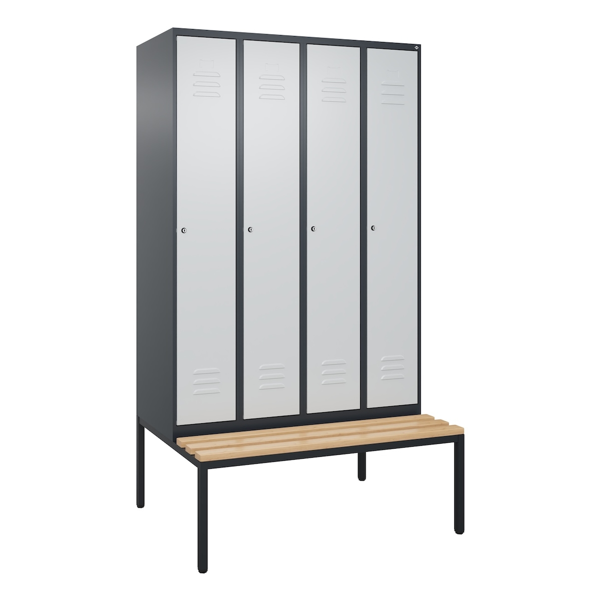 C+P Spind Classic PLUS, Buche untergebaute Sitzbank 4 Abteile, HxBxT 212x120x82cm, Zylinderschloss, Anthrazit/Hellgrau von PROREGAL