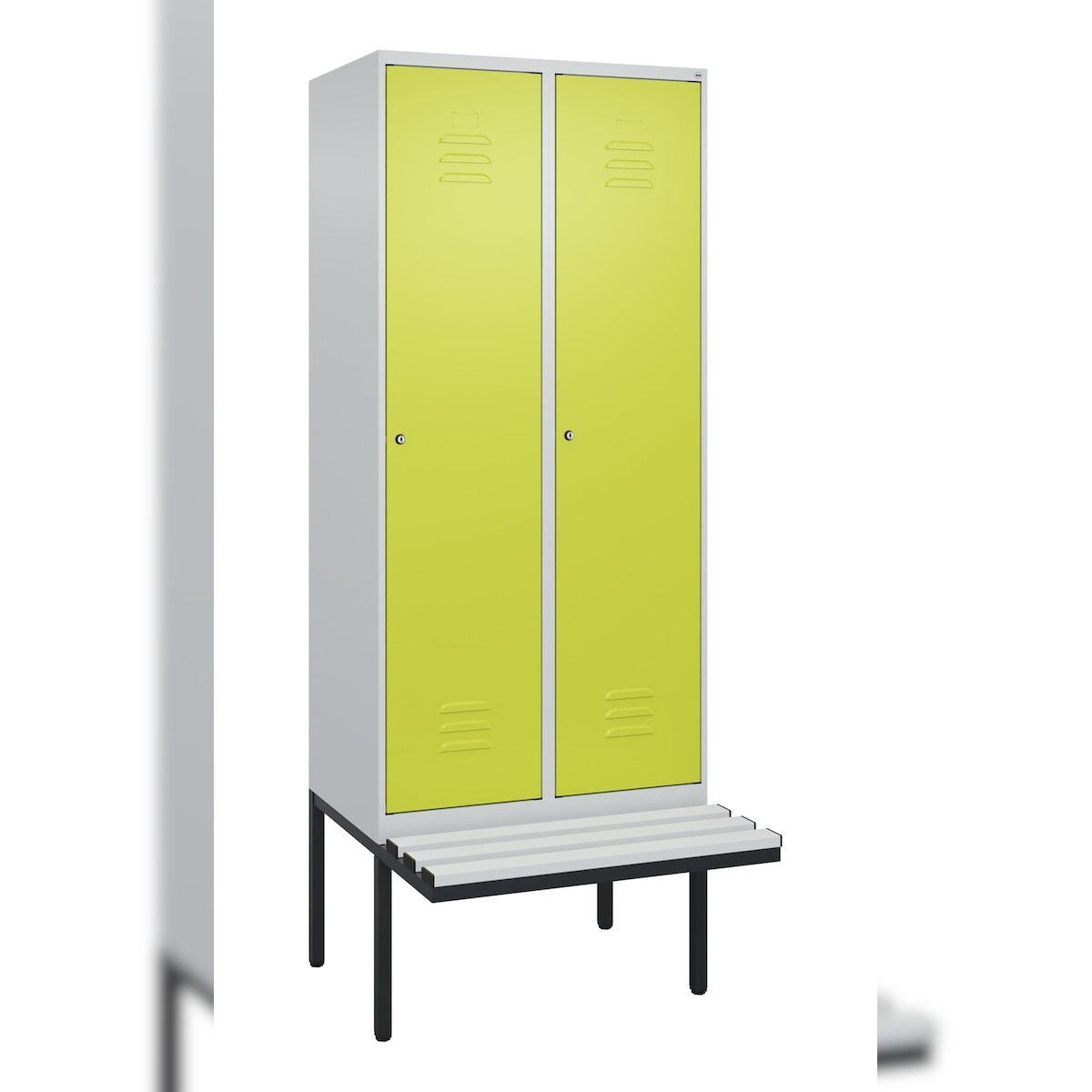 C+P Spind Classic PLUS, Kunststoff schwebende Sitzbank, 2 Abteile, HxBxT 212x80x82cm, Zylinderschloss, Hellgrau/Clowngrün von PROREGAL
