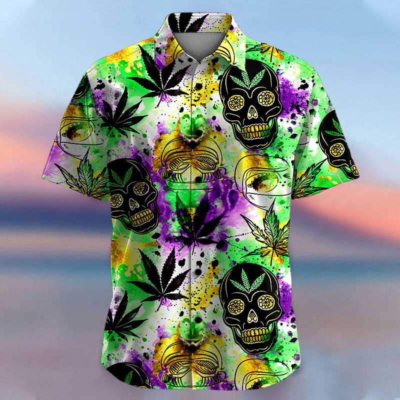 Men's Skull Summer Hawaiian Shirt Button Up Shirt Aloha Shirt Short Sleeve Shirt Collared Shirts Hawaiian Casual Vacation Party Evening Wear Daily Green S M L