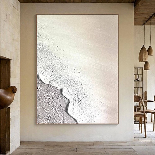 grande dipinto fatto a mano 3d bianco minimalista da spiaggia dipinto a mano con texture arte della parete pittura con onde dell'oceano su tela pittura wabi-sabi per soggiorno pittura arredamento di