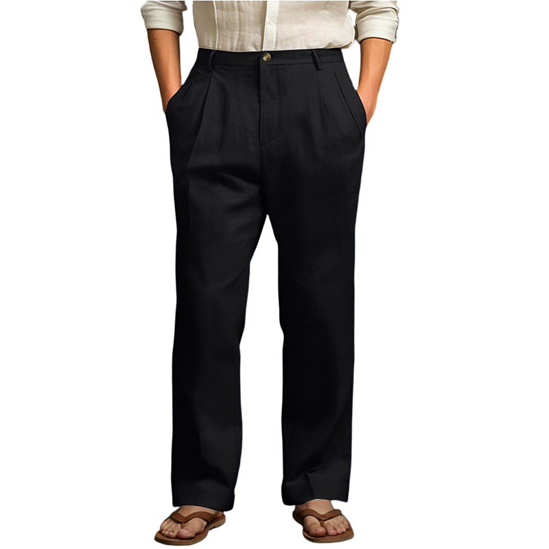 Men's Cotton Linen Pants Trousers Summer Pants Baggy Pants Beach Pants Pocket Solid Color Comfort Breathable Daily Outdoor Beach Vacation Fashion Black White Inelastic