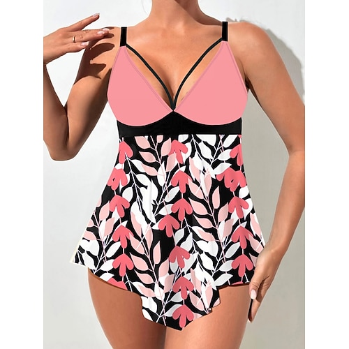 Per donna Costumi da bagno Tankini Gonna Costume da bagno Elegante Vacanza Floreale Grafico Scollo a V Senza Maniche Costumi da bagno