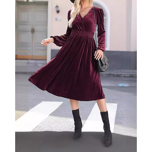 Per donna Vino Marrone Verde Autunno Inverno Abito Midi Tubino Compleanno Formale Abiti semi formali Formale Matrimonio Data Vestibilità regolare Scollo a V