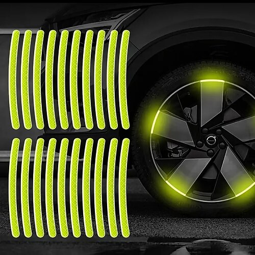 20 adesivi riflettenti per cerchi ruota – decalcomanie di sicurezza fosforescenti per auto e moto biciclette
