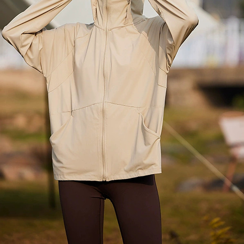 Women's Casual Jacket Sun Protection Comfortable Zipper Pocket Fashion Outdoor Plain Going out Weekend Zipper Regular Hooded Regular Fit Long Sleeve Outerwear Black White Pink Summer
