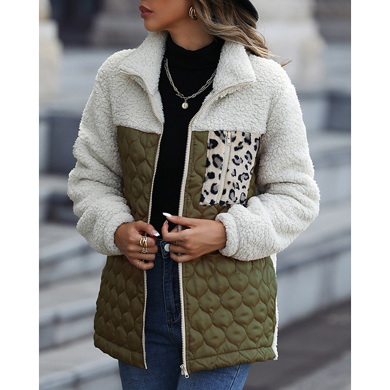 Women's Fleece Jacket Teddy Coat Warm Breathable Zipper Pocket Fleece Lined Casual Plain Vacation Street Daily Wear Going out Zipper Regular Stand Collar Regular Fit Long Sleeve Outerwear White Pink