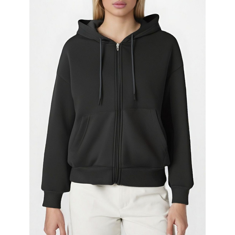 Women's Casual Jacket Outdoor Zipper Solid Color Windproof Fashion Loose Fit Outerwear Long Sleeve Fall Black S