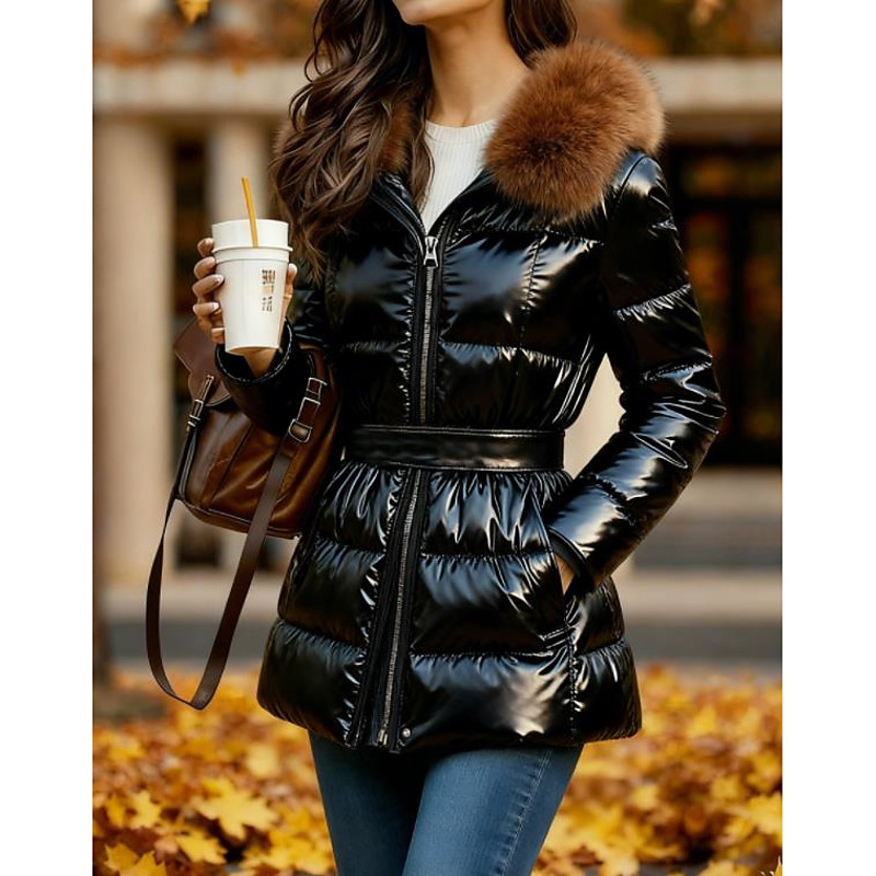 Women's Quilted Jacket Padded Jacket Casual Jacket Warm Comfortable Zipper Pocket Faux Fur Trim Fashion Casual Plain Street Casual Daily Wear Going out Zipper Regular Hooded Regular Fit Long Sleeve