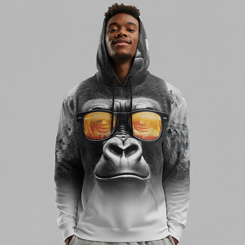 Men's Optical Illusion Gorilla Hoodie Sweatshirt Fashion Cool 3D Long Sleeve Crew Neck Home Party Streetwear Black White Drawstring Fall Winter Designer S M L XL XXL XXXL