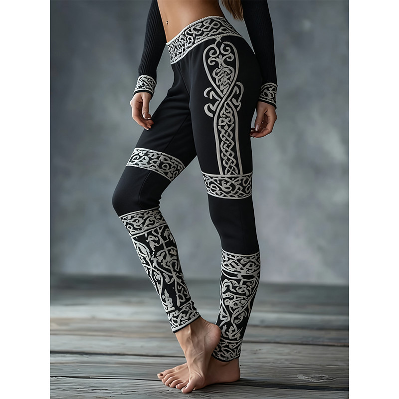 Women's Leggings Vacation Vintage Ethnic Style Full Length High Waist Graphic Abstract 3D Print Quick Dry Breathability Soft Stretchy Outdoor Street Athleisure rice white Black White Orange Fall