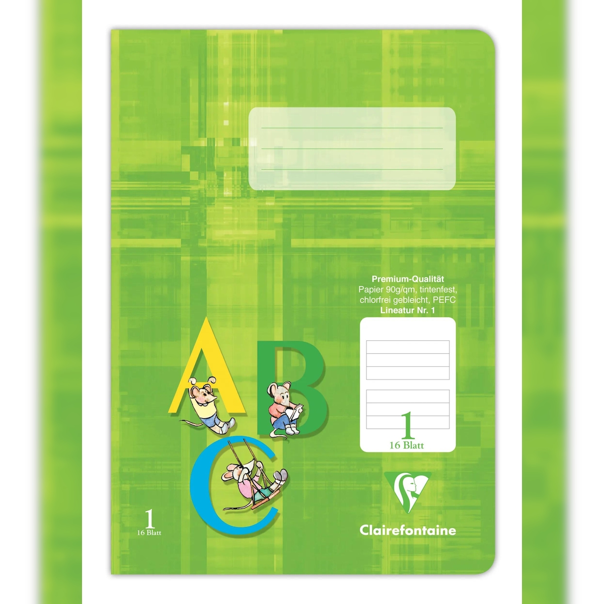 Clairefontaine 25x Schulheft Clairefontaine, DIN A5, 16 Blatt, 90g, Lineatur 1 liniert für 1. Schuljahr - Zitrusgrün 331501C