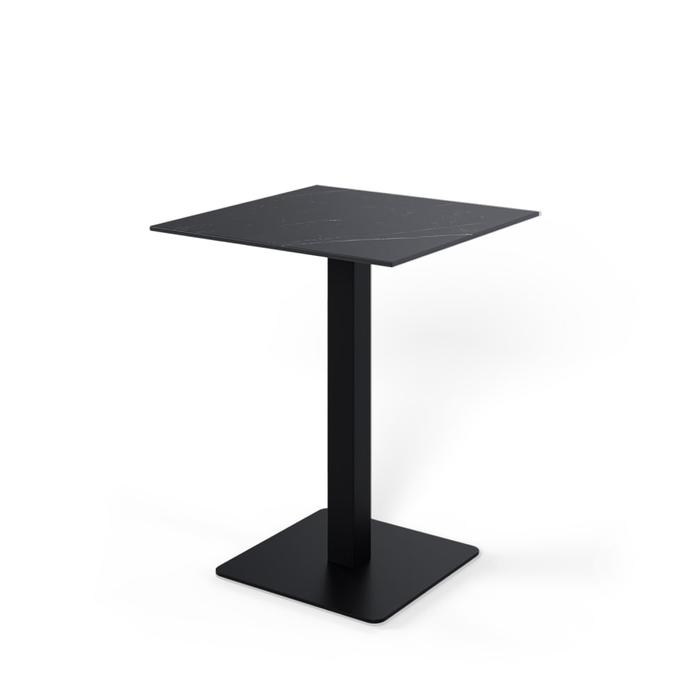 Tavolo alto quadrato con piano nero e gamba nera