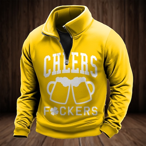 Giorno di San Patrizio Per uomo Trifoglio Felpa Sport Moda Casual Con cerniera Casa Abbigliamento casual alla moda Lavoro Feste Nero Giallo Verde Autunno Tutte le stagioni progettista S M L XL XXL