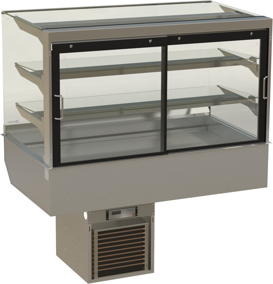 HAGOLA Showcase "Kopenhagen" eckig, für 3 Kuchenbleche, 3 Auslagen 1330x710/265+300x792mm (BxHxT) steckerfertig mit Transporthalterung