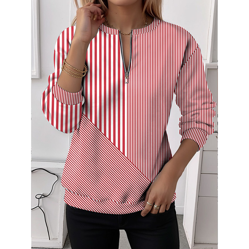 Women's Zip Up Sweatshirts Graphic Striped Casual Long Sleeve Crew Neck Regular Tops Street Dailywear Half Zip Print Yellow Red Blue Purple Green Spring Fall Winter