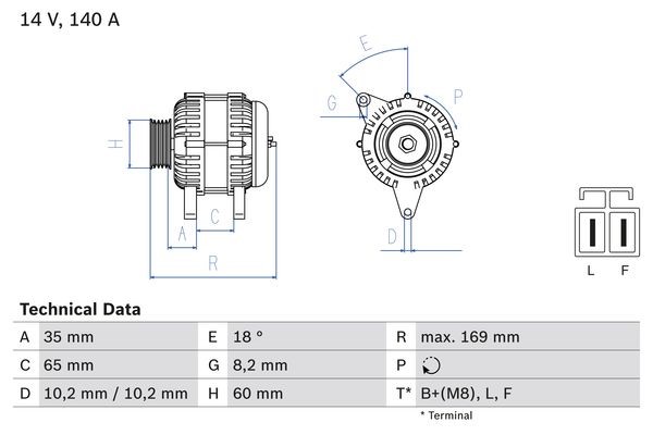 Laturi 14V 140A Bosch 0 986 084 150 - opel, vauxhall - OE 12 04 425, 62 04 275, 8-98031-155-1
