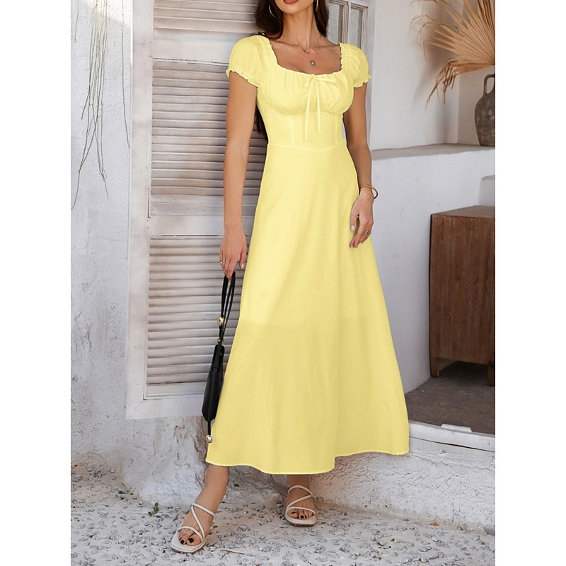 Women's Long Dress Maxi Dress White Dress Casual Dress Swing Dress Summer Dress Fashion Modern Elegant Dress Daily Date Weekend Regular Fit Plain Short Sleeve Square Neck Black White Yellow Navy Blue