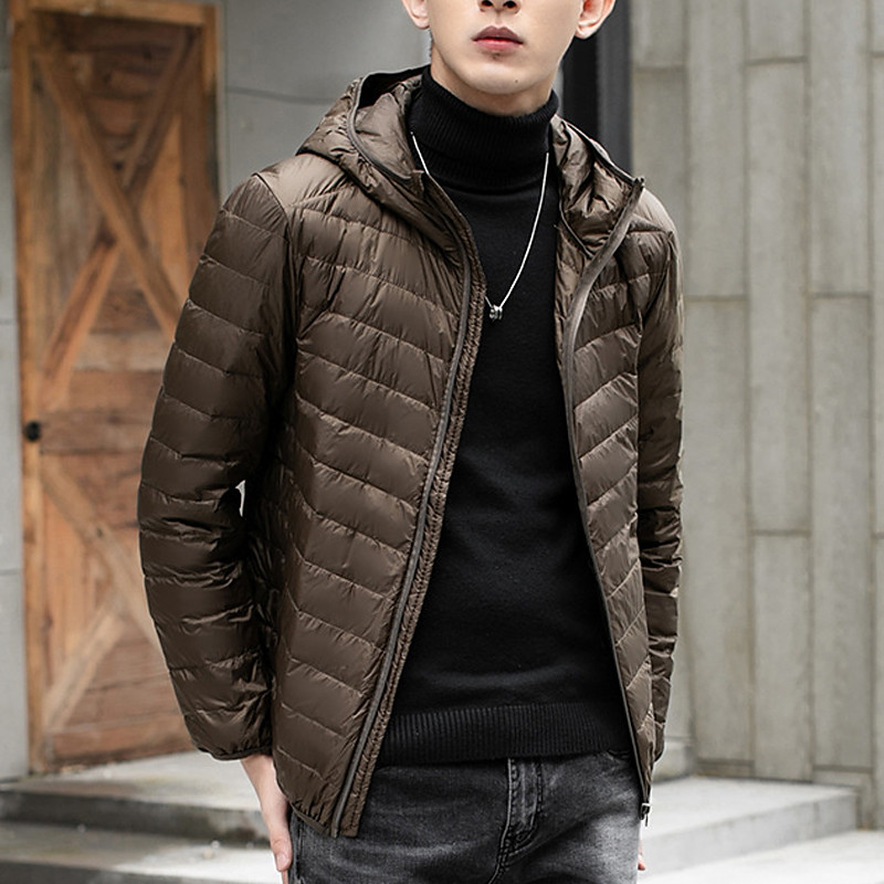 Men's Winter Coat Down Jacket Puffer Jacket Padded Jacket Pocket 50% White duck down Vacation Daily Wear Date Regular Fashion Casual Comfortable Thermal Warm Winter Solid / Plain Color Wine Black