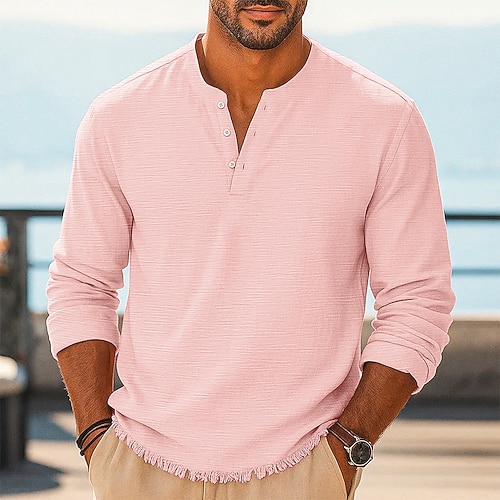 Per uomo Camicia in cotone e lino Maglia Henley Maglietta Top Henley Manica Lunga Tinta unica Semplice Tinta unita Moda Designer Casual Blocco di colore Bottoni Henley All'aperto Casuale Quotidiano