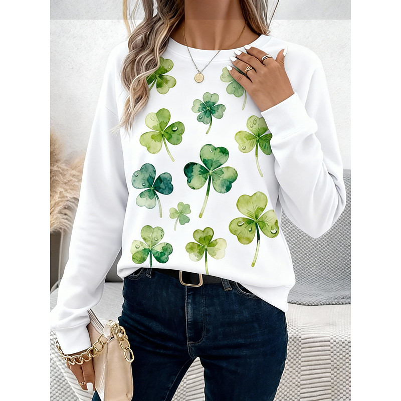 Women's Pullover Sweatshirt Shamrock Casual Long Sleeve Crew Neck Regular Tops Street Dailywear Casual Green Spring