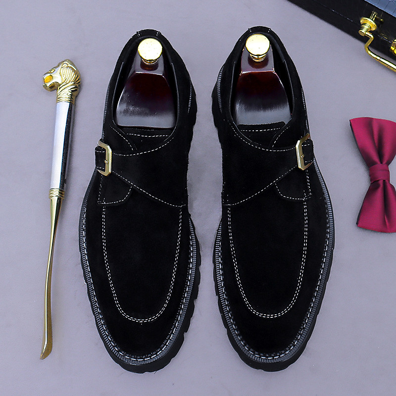Men's Brown Suede Leather Monk Strap Shoes - Genuine First Layer Cowhide Classic Business Dress Footwear for Office and Formal Occasions