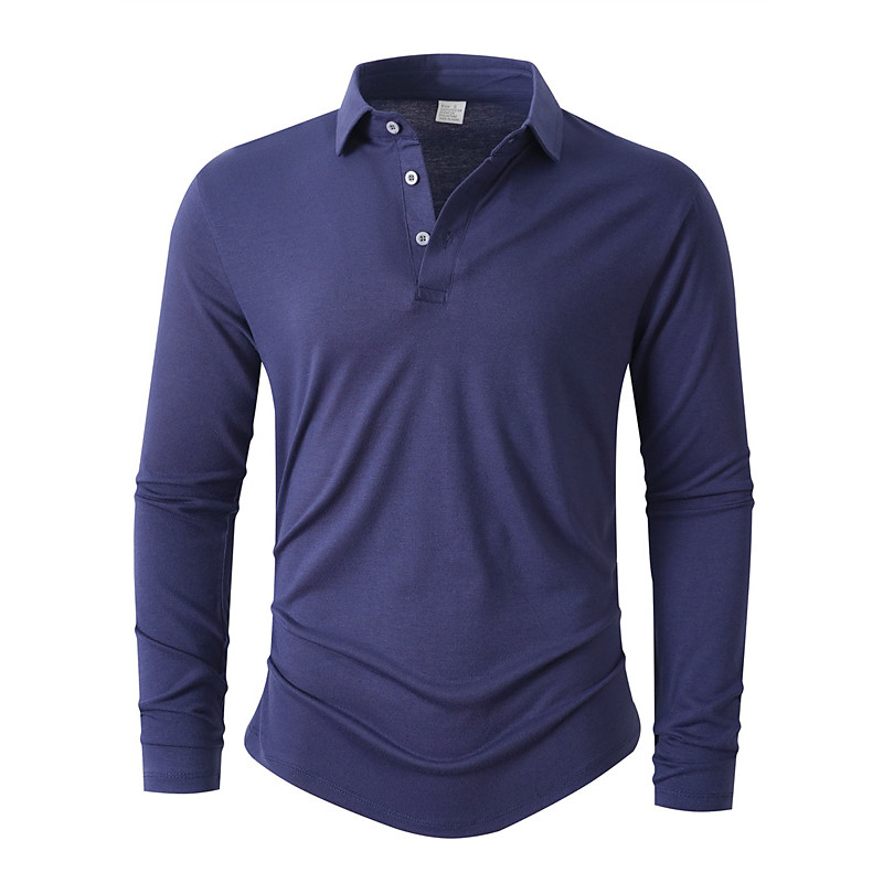 Men's Golf Shirt Golf Polos Shirts Casual Work Lapel Long Sleeve Basic Modern Plain Buttons Front Pocket Spring Fall Regular Fit Blue Black Navy Blue Purple Brown Green Golf Shirt